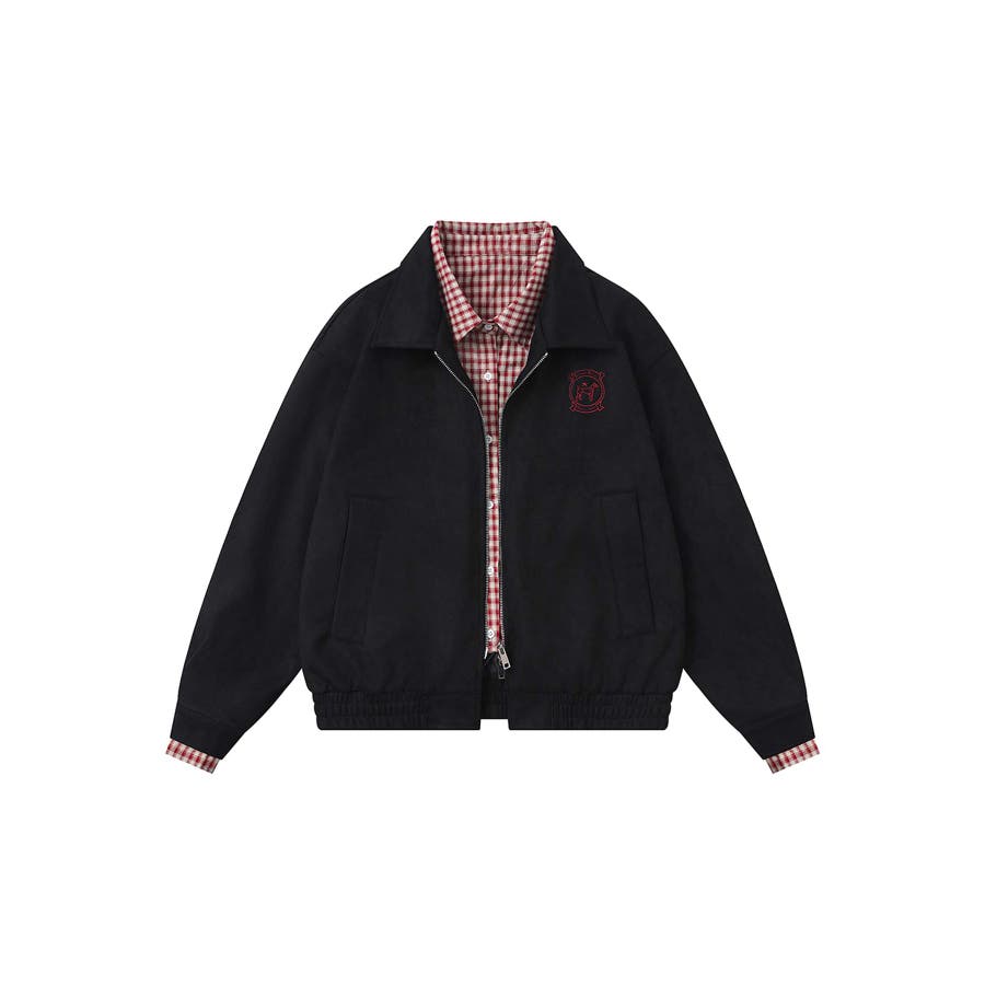 HOOK -select- チェックシャツレイヤードスエード風コーチジャケット