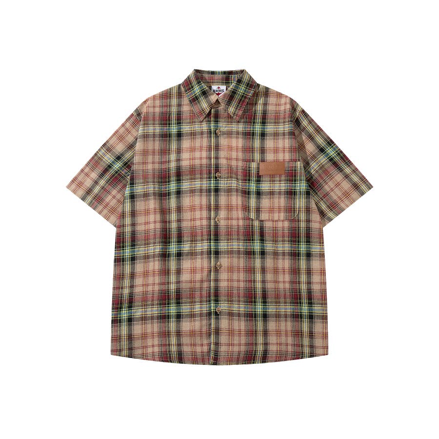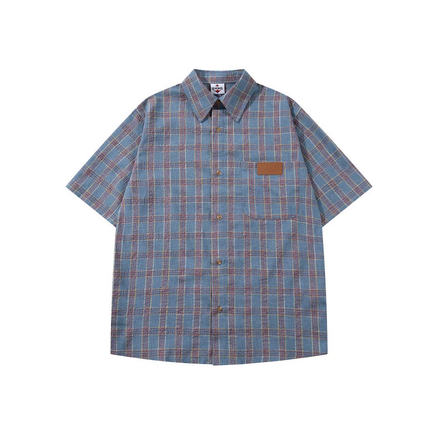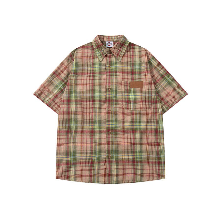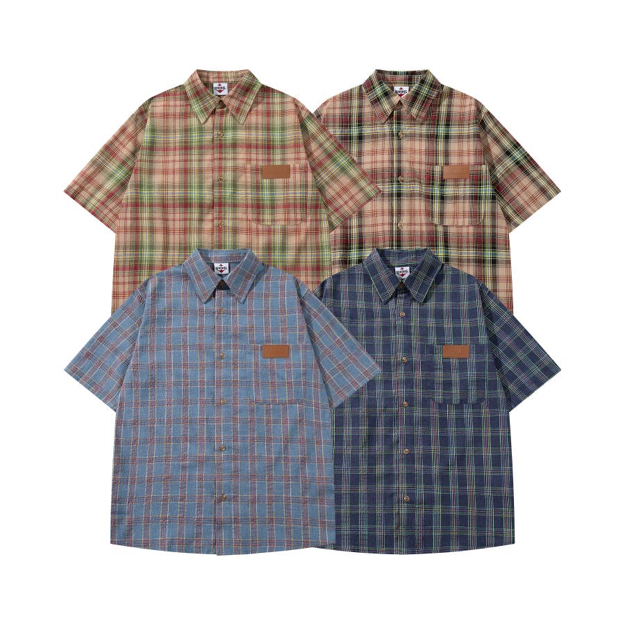 シックなカラーリングとクラシカルな雰囲気が魅力のチェック柄シャツ!アンティーク調の落ち着いたチェックパターンが、大人のリラックスカジュアルを演出。薄手素材のさらっとした肌触りで、暑い季節も快適に着こなせるアイテムです。胸ポケットにはレザー風のネームタグを施し、さりげないアクセントをプラス。トレンドのゆったりとしたシルエットで、羽織りとしても◎。デニムやワイドパンツと合わせて、ラフに着こなすのもおすすめ。【ポイント】_ アンティーク感のあるクラシックチェック柄_ 通気性の良いコットン素材で爽やかな着心地_ ユニセックスで楽しめるオーバーサイズシルエット【カラー】ブルー / ネイビー / レッド / グリーン【サイズ】M / L / XL