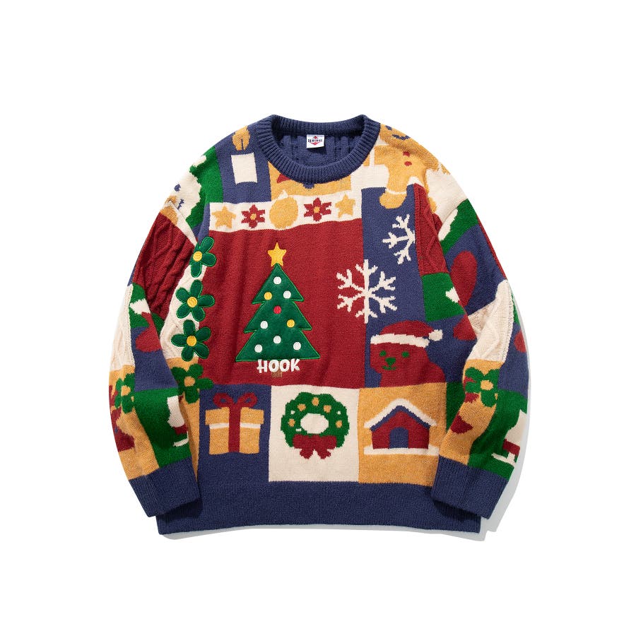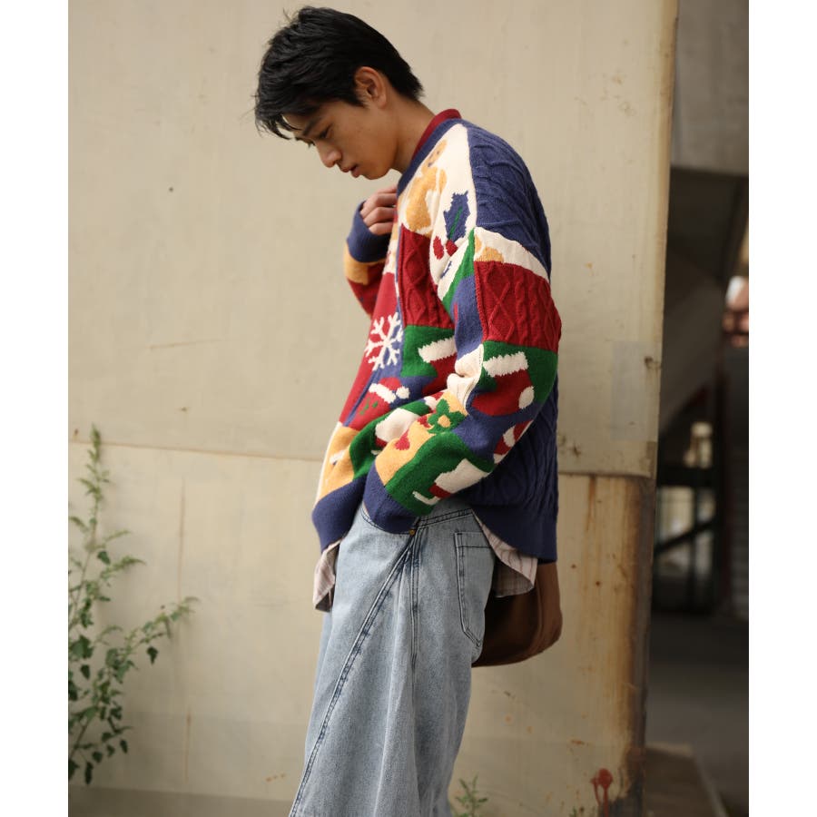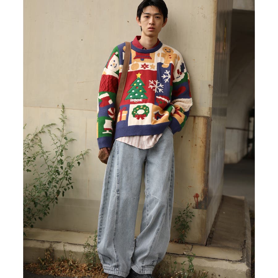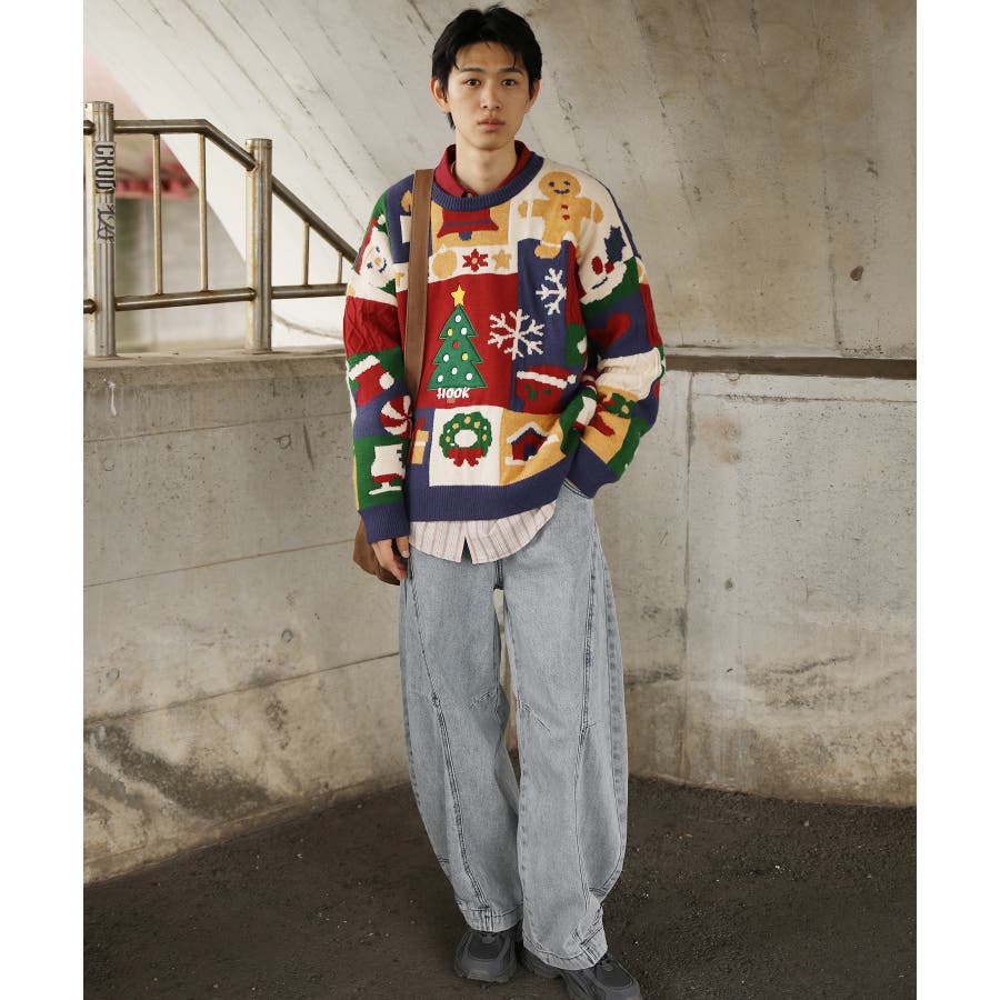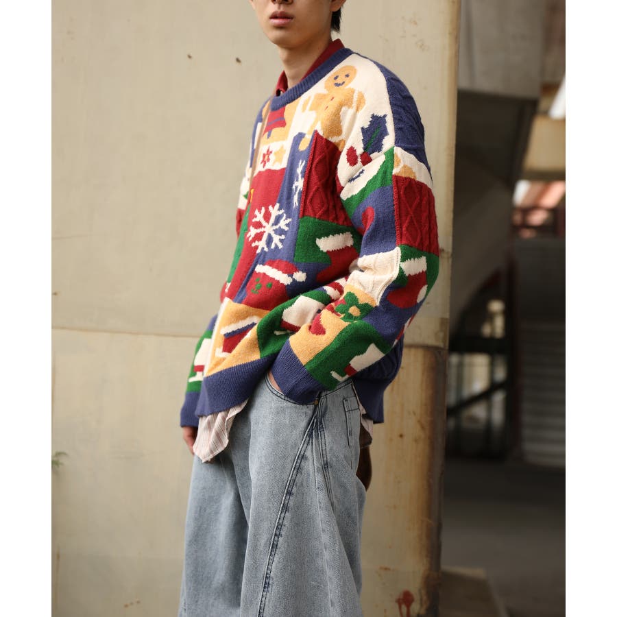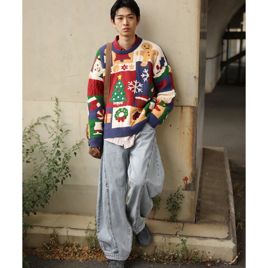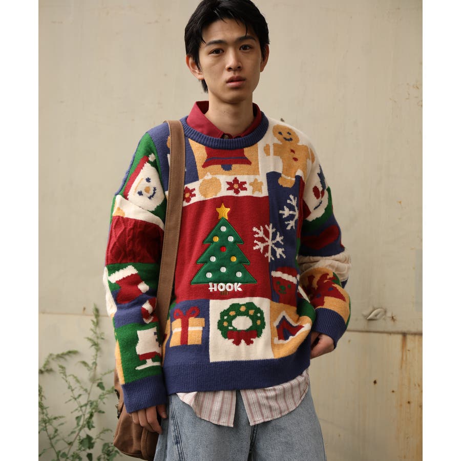 HOOK -original- 厚手パッチワーククリスマスニットプルオーバー