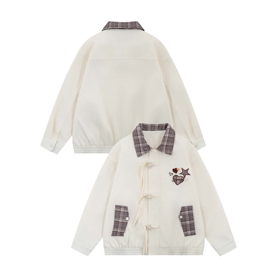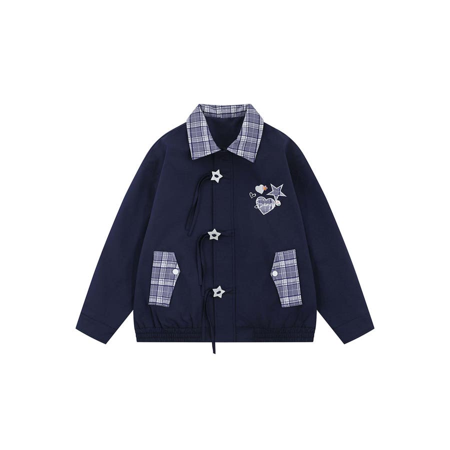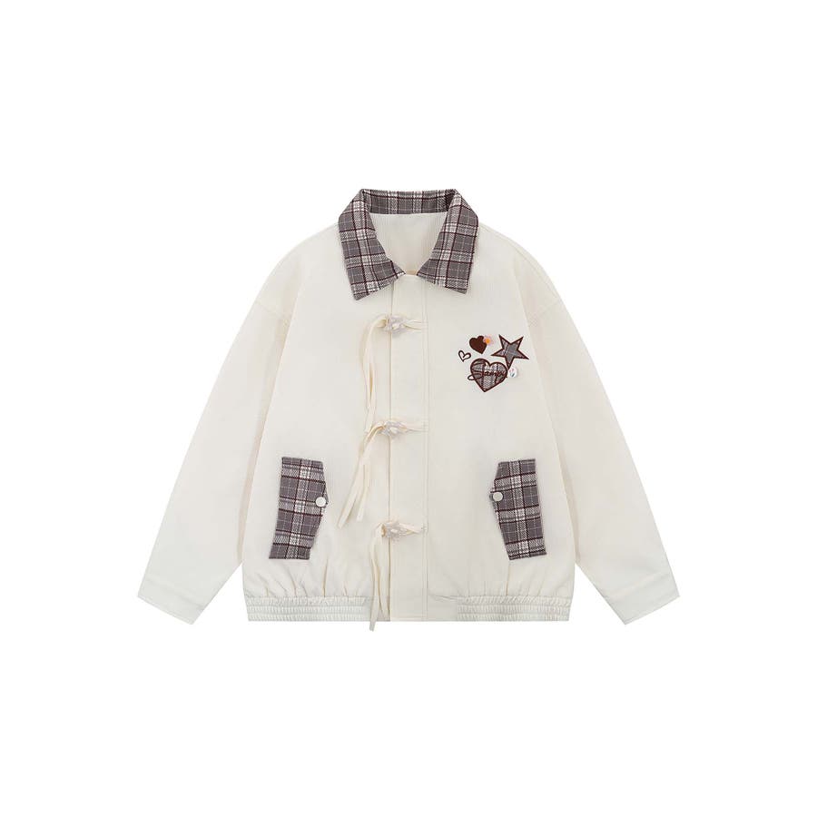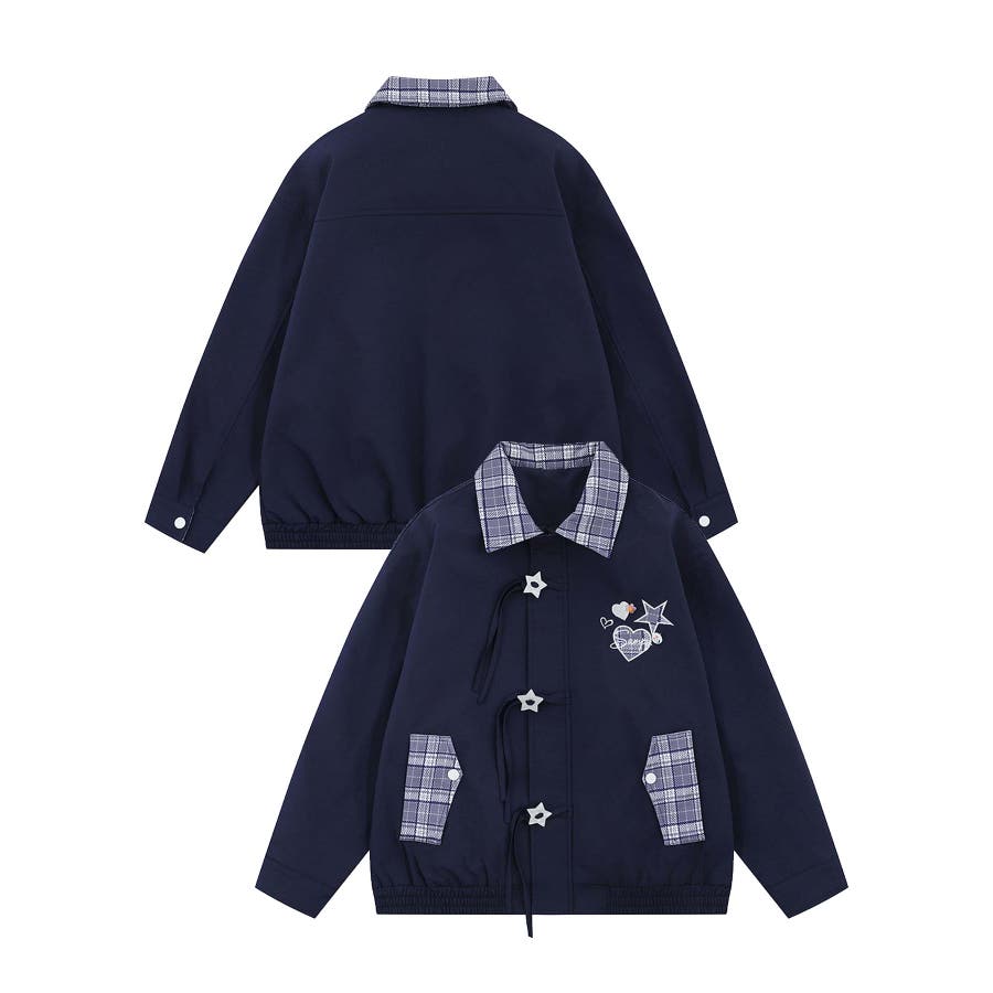 トレンドのチェック柄を大胆に取り入れたジップアップジャケットオーバーサイズのシルエットがこなれ感を演出し、カジュアルスタイルを格上げしてくれますチェック柄の切り替えがアクセントになり、シンプルながらも存在感のある一着ファスナーカバーの星型のループボタンはリボンがついていて流れ星のようなデザイン柔らかく肌触りの良い素材を使用しており、快適な着心地。ユニセックスデザインなので、男女問わず着こなせるのも魅力です