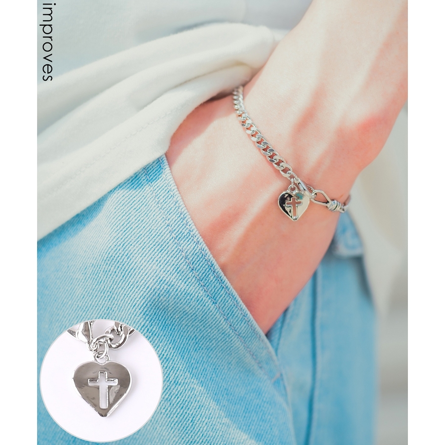 どんなコーデにも合わせやすいハートクロスチャームチェーンブレスレットをご紹介。