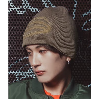 トレンドのストリートスタイルに欠かせない、刺しゅうロゴ入りルーズビーニーです。