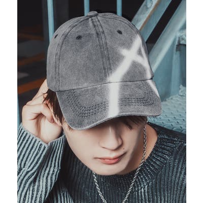 ストリート感漂う スプレーアート ウォッシュド キャップ