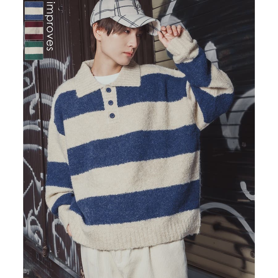 存在感のあるボーダーとボリューム感が魅力のラガーニットです。