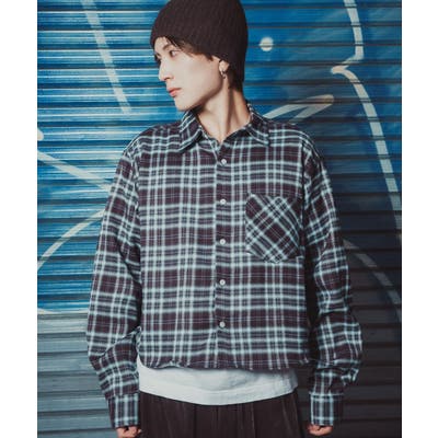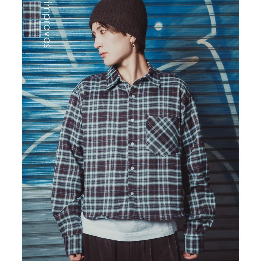 暖かみのある起毛素材が魅力のクロップド丈チェックシャツ。