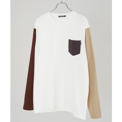 左右の袖を色違いの生地で仕立てたクレイジー長袖Tシャツをご紹介。