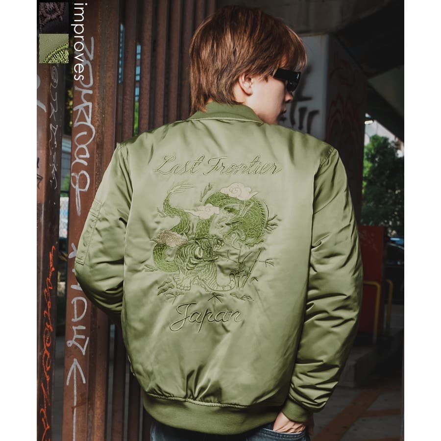 ミリタリーの定番MA-1をベースに、大胆なスーベニアジャケット(スカジャン)のディテールを融合させた一枚。