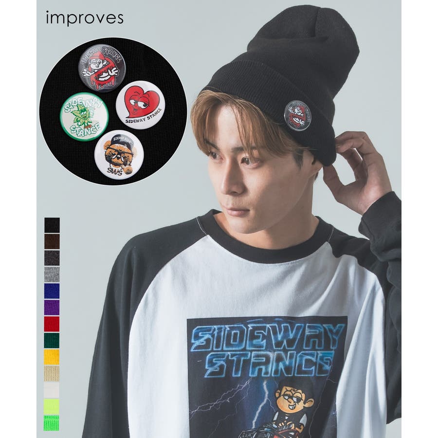 缶バッジ付き ニット帽 メンズ