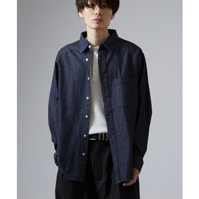 ゆったりとしたシルエットが特徴の長袖デニムシャツ。