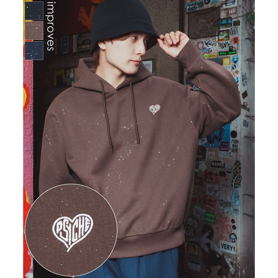 煌めくラメ素材がさりげなく印象付ける 刺しゅうロゴ パーカー