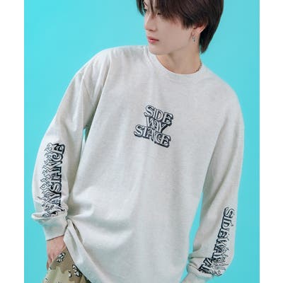 袖のファイヤーパターンとフロントのロゴが目を引く長袖Tシャツ。