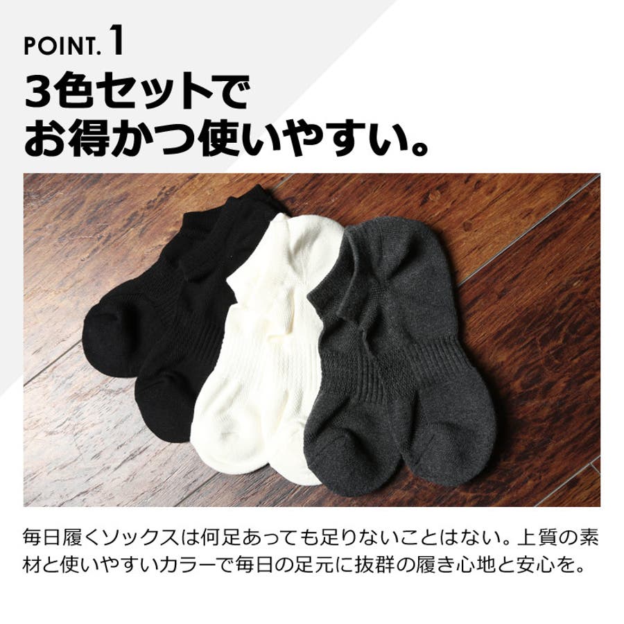 三足セットアンクルソックスのご紹介です。アンクル丈でスニーカーとの相性抜群◎お得な三枚セットで登場。カラー展開もモノトーンでどんな場面でも使えるブラック、ホワイト、グレー。使いまわしの効くアイテムです。