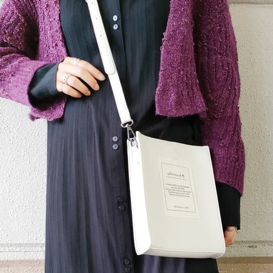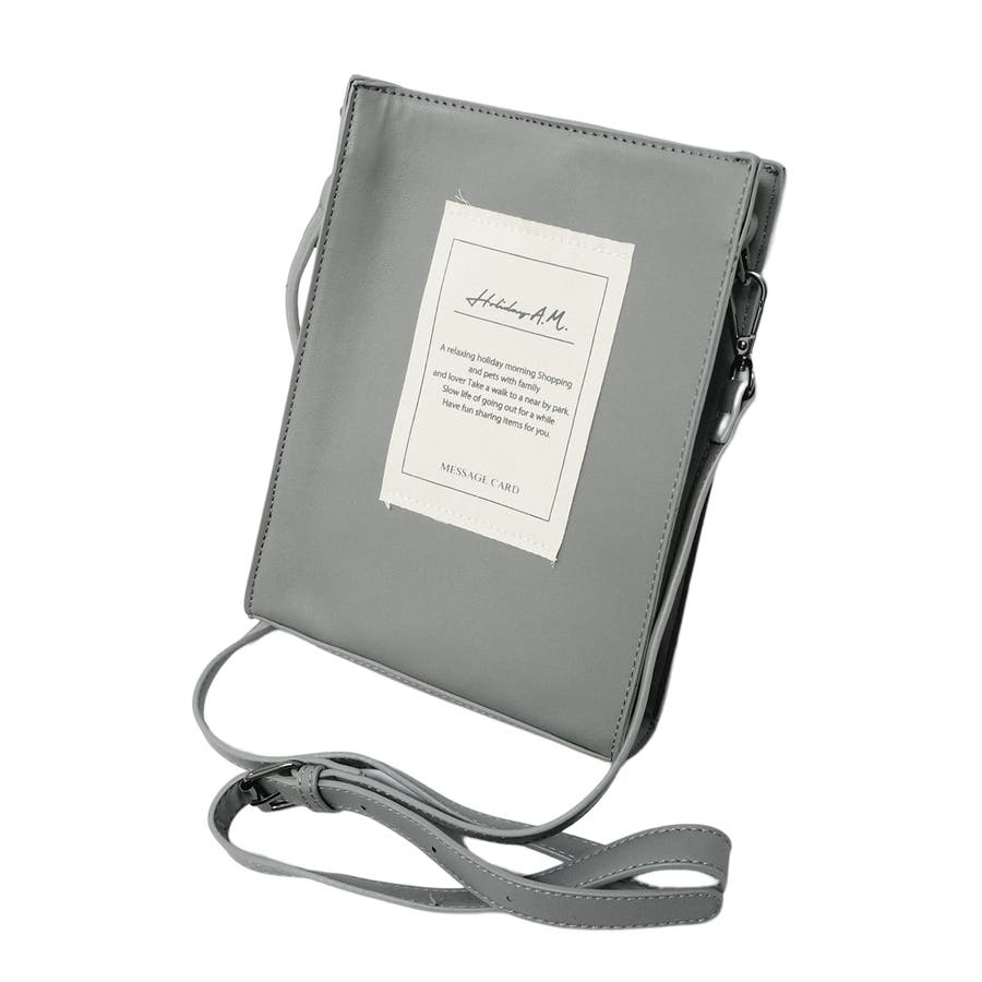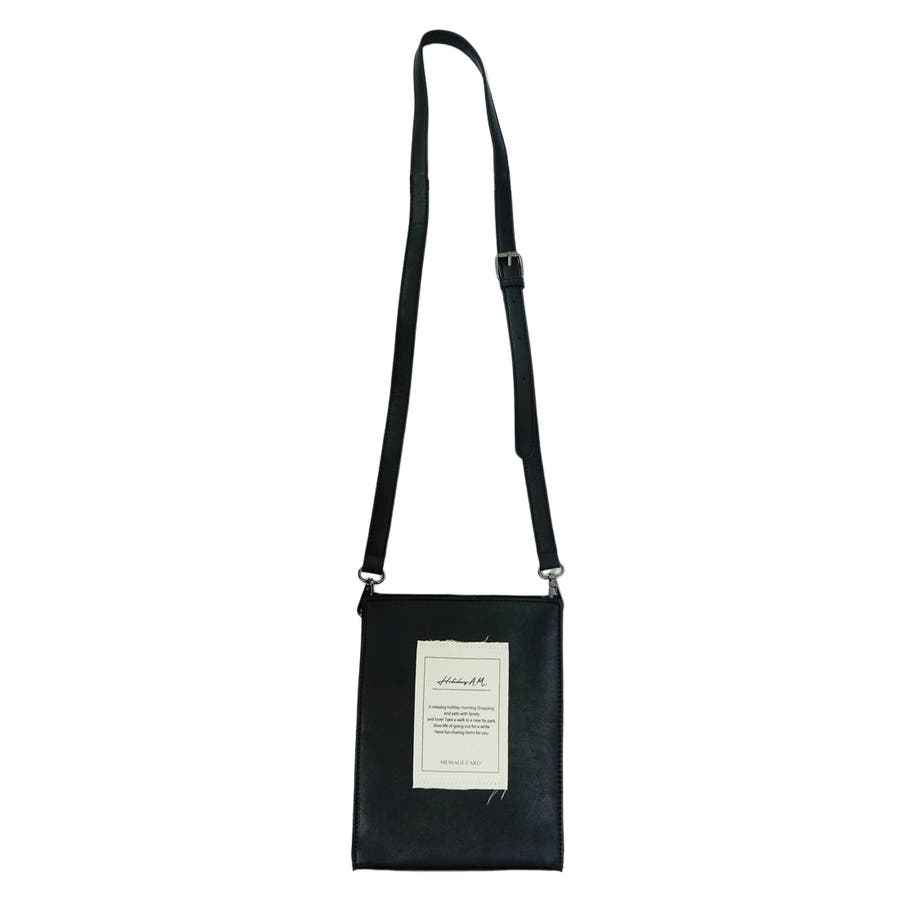 前面のメッセージラベルがアクセントになって高見えするバッグです。