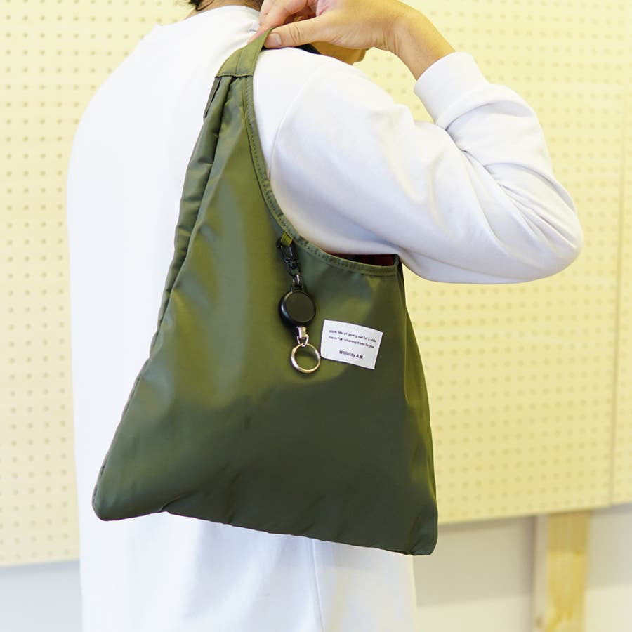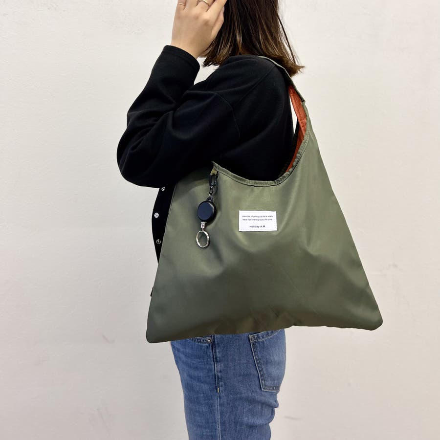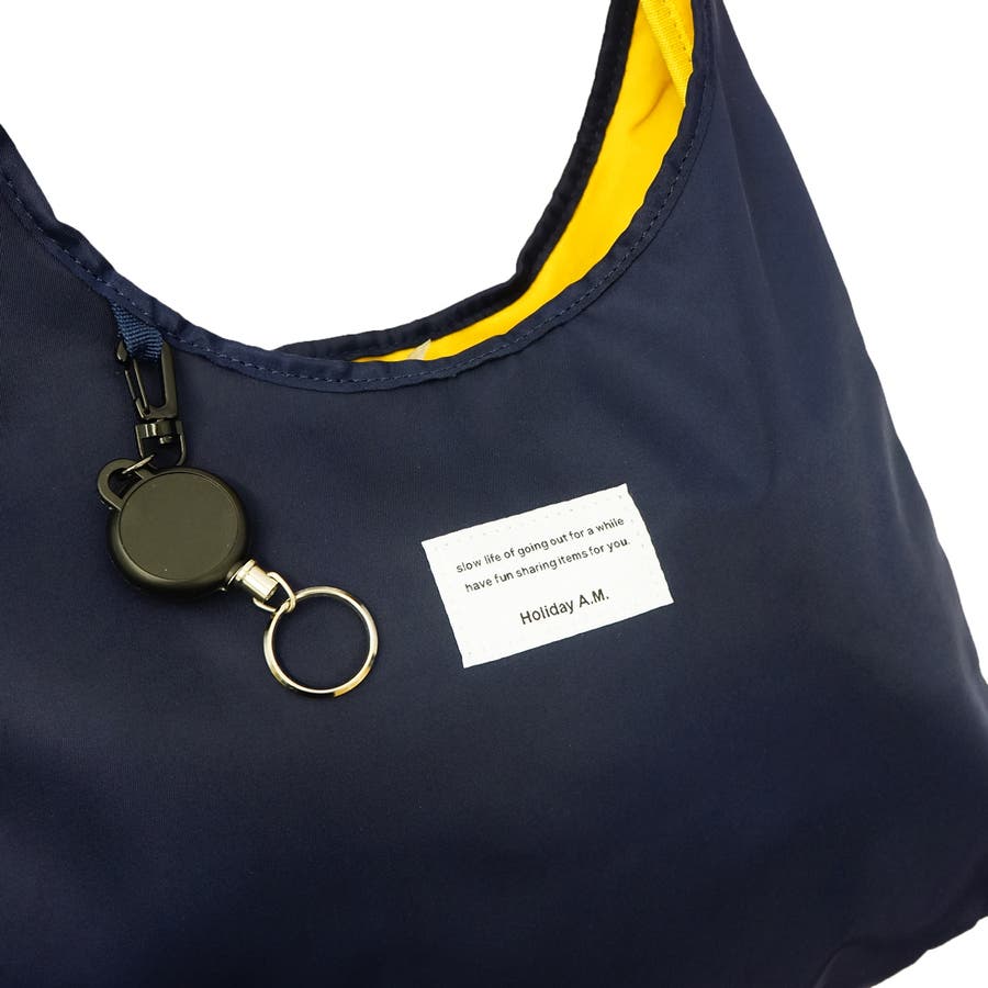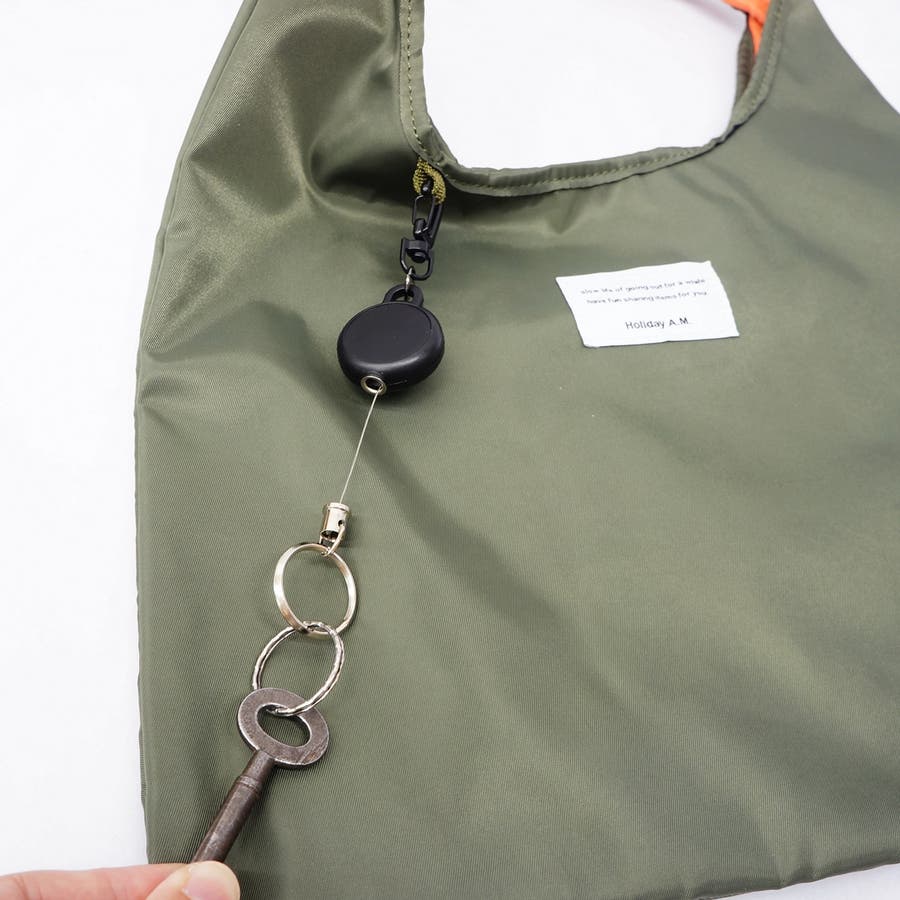 | 素材 | サイズ:タテ28cm(持ち手除く)xヨコ39cm 仕様:内ポケット×1、キーリール×1 素材:高密度ポリエステル |