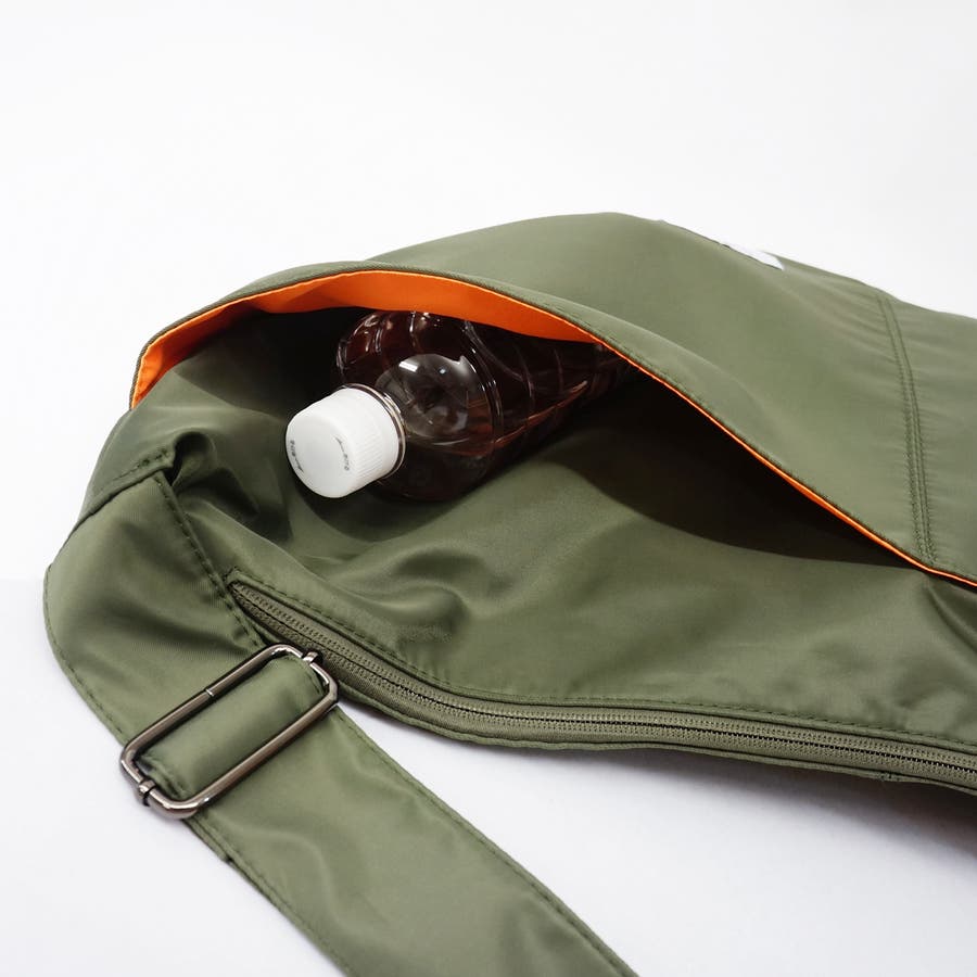 内側はミリタリーを意識したカラー。中の荷物が分かりやすい明るい配色の仕様になっています。男女兼用のデザインです。