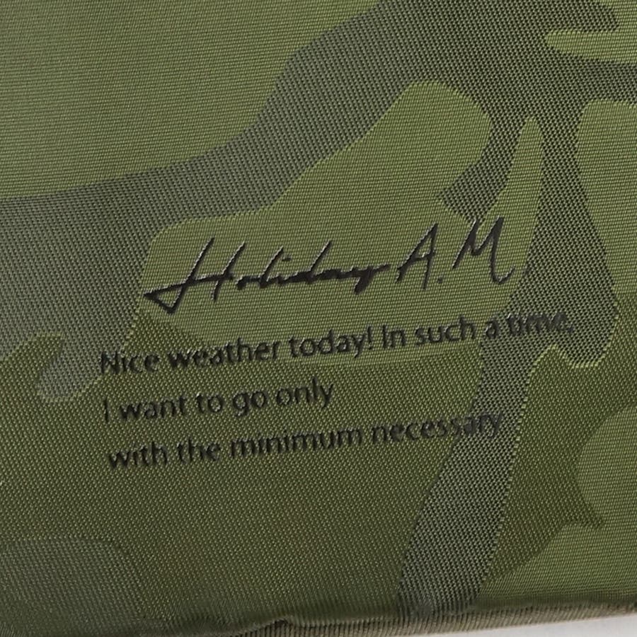 カジュアルなポリエステル素材を使用し、Holiday A.M.のロゴプリントがポイントです。