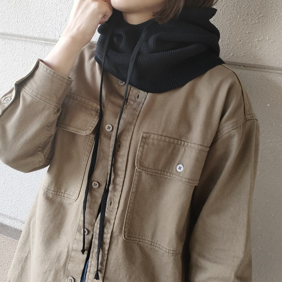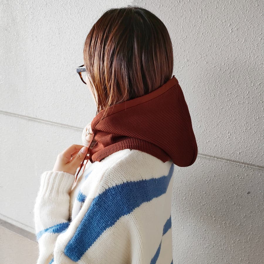 マフラー代わりのネックウォーマーとしてはもちろん、フーディの役割もあります。