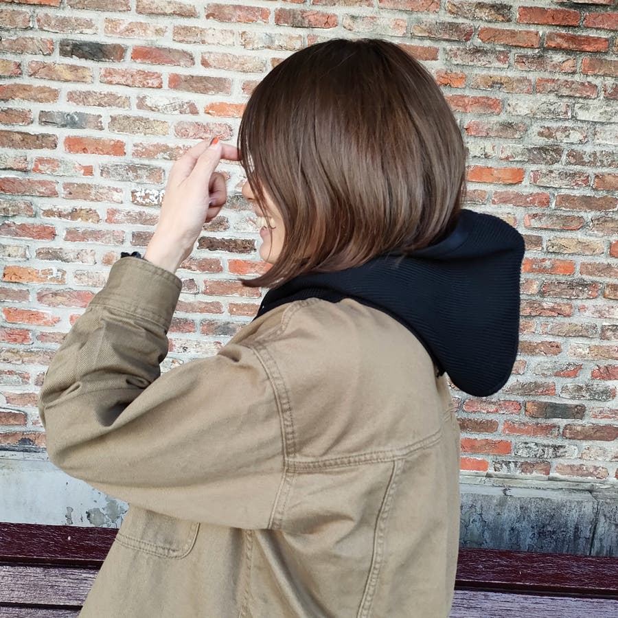付けフードやネックウォーマーとしても使えしっかりと首元を温めてくれるので防寒対策にもおススメ。