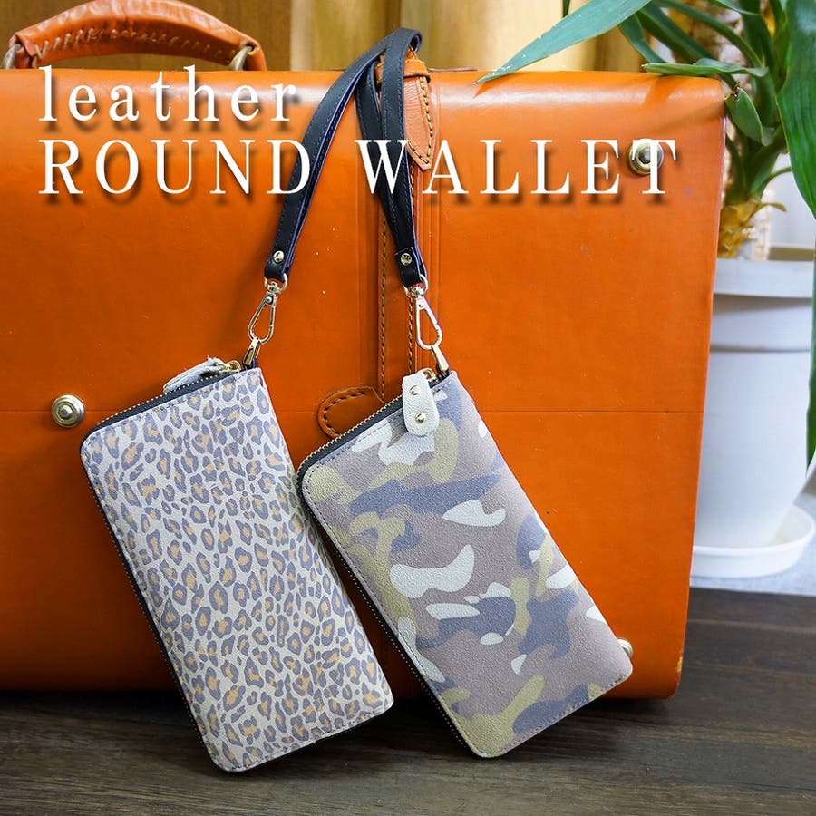 財布長財布メンズ本革レザースウェード迷彩柄ヒョウ柄 ラウンドファスナーストラップ…