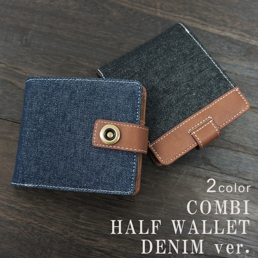 財布二つ折りメンズレディースハーフウォレットデニムコンビ収納力ありキーズKeys…