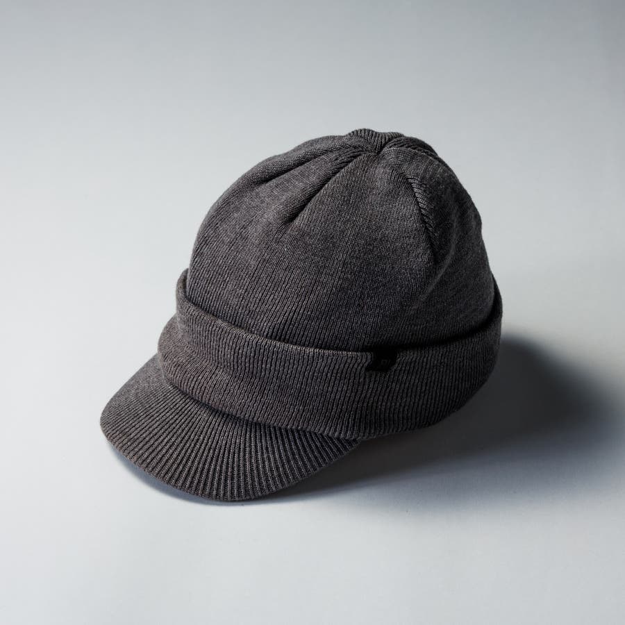 柔らかなコットンニットに、つばを組み合わせたキャップタイプのデザイン。