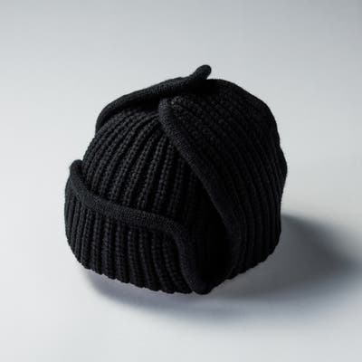 耳当て付きのクラシカルなデザインを、ざっくりとしたリブ編みニットで仕上げたフライトキャップ。