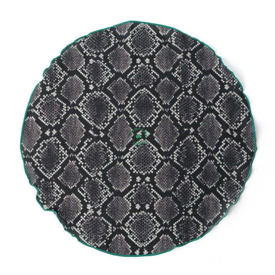 KINGZ by Samantha Thavasa(キングズバイサマンサタバサ)パイソン柄サークルハンカチーフ。大胆なパイソン柄がスーツのさりげないポイントになるアイテム。サークルの形をしているのでハンカチーフの形が作りやすくキレイに入れられるのが◎ヘム部分の玉取りがポップなカラー展開なのでお気に入りの1枚を見つけられます♪