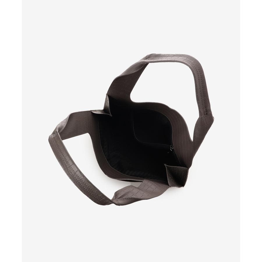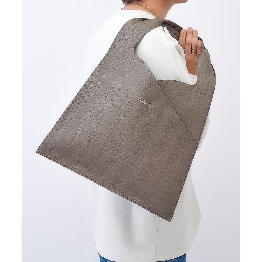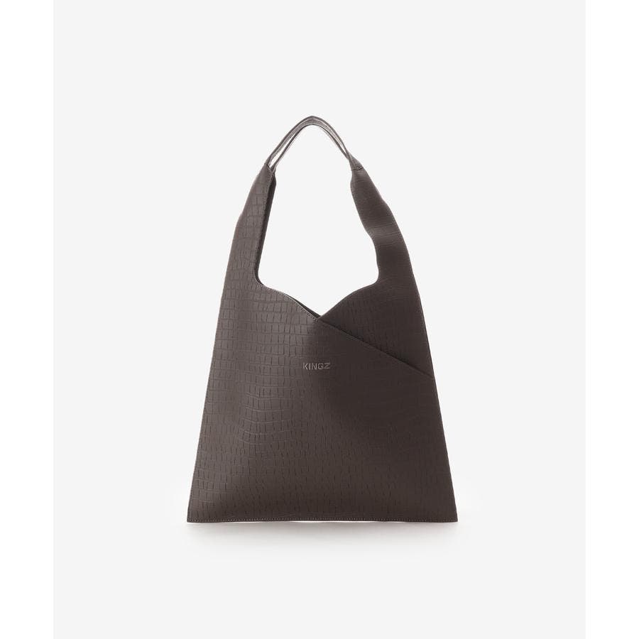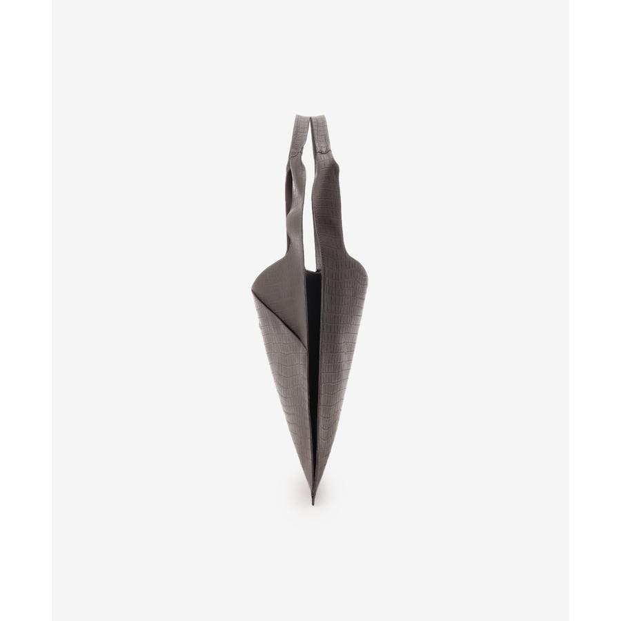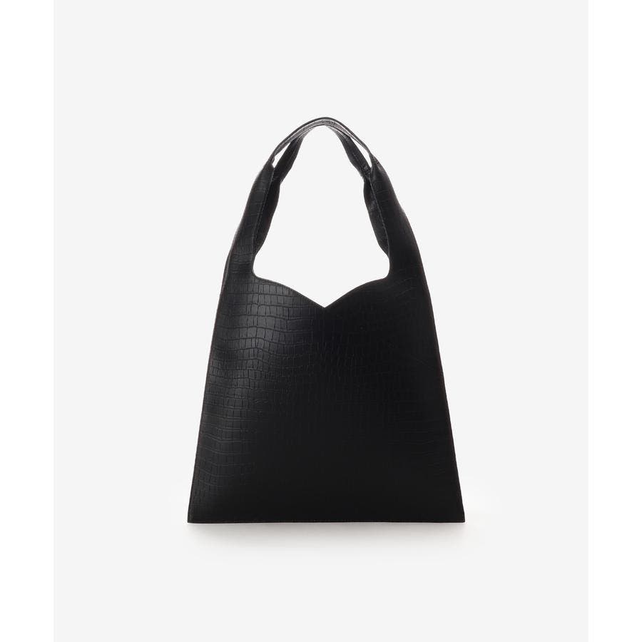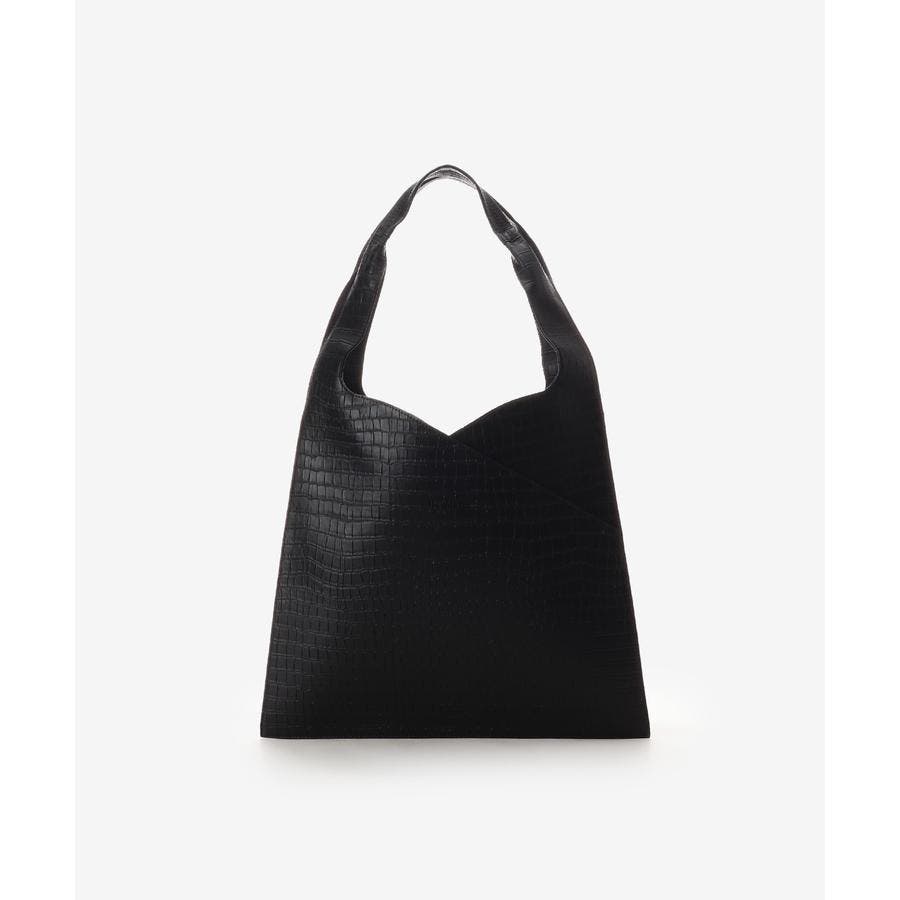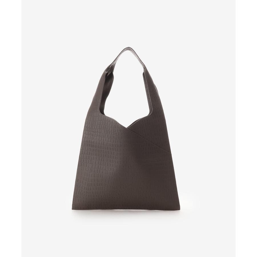トライアングルが特徴的なクロコ型押しのトートバッグ。