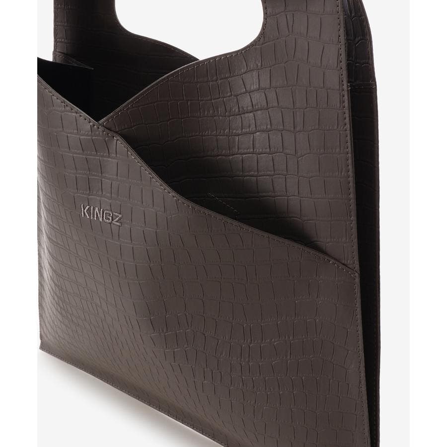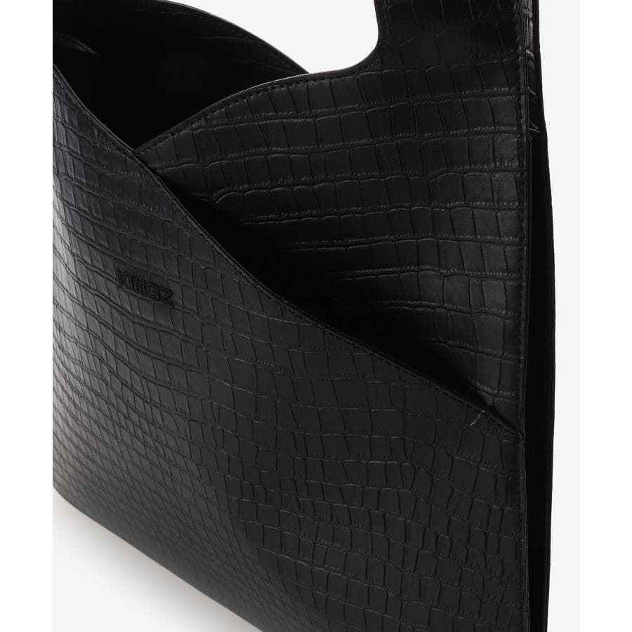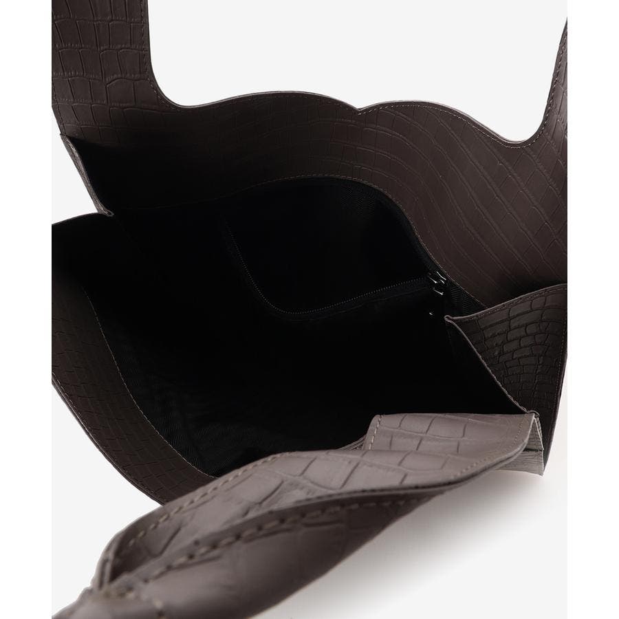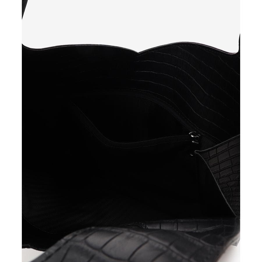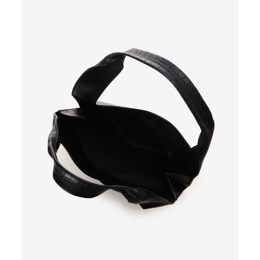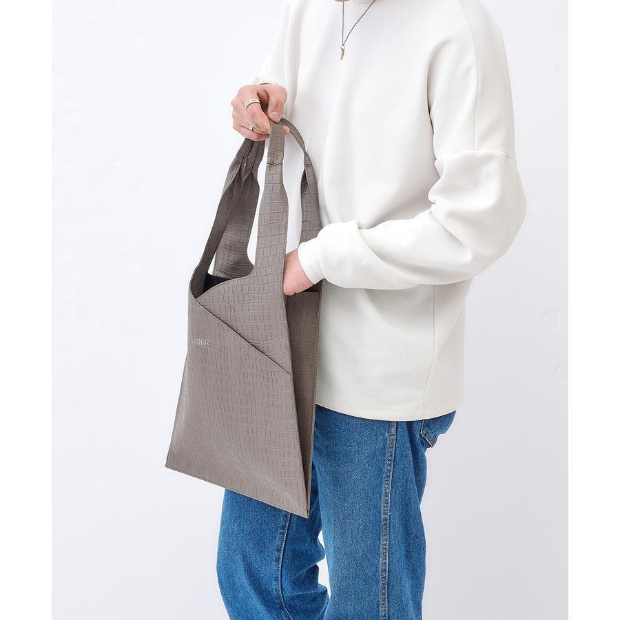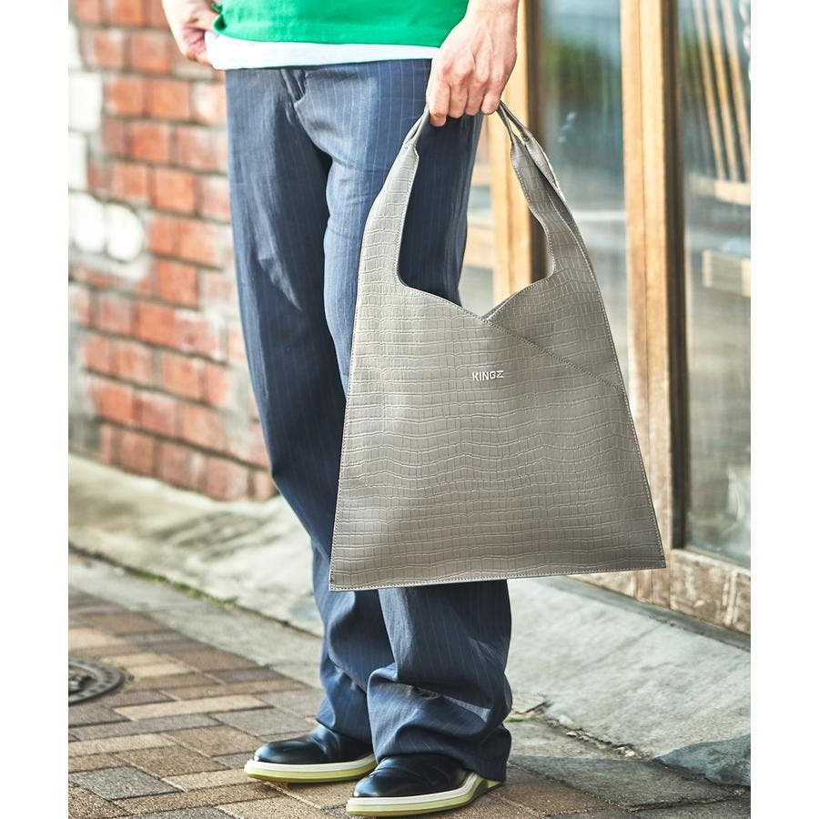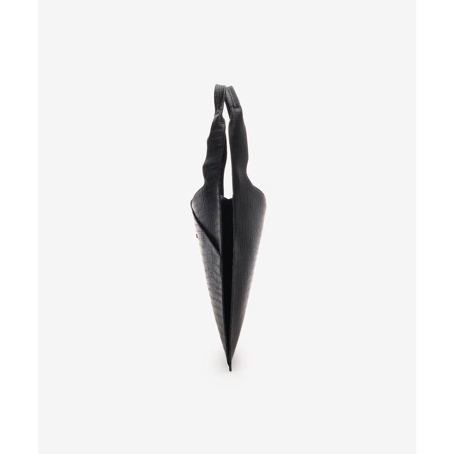 トライアングルが特徴的なクロコ型押しのトートバッグ。