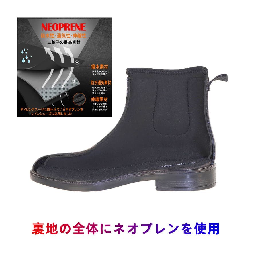 底・甲・筒の下部は合成樹脂、筒のサイドゴア部から履き口までネオプレンを使用することで、通常のサイドゴアブーツと違い、履き口までの完全防水を実現。