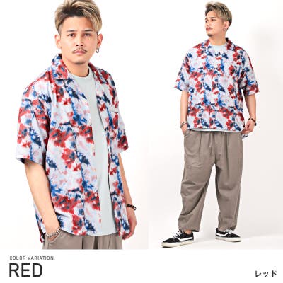 『タイダイ風プリントオープンカラー半袖BIGシャツ』
