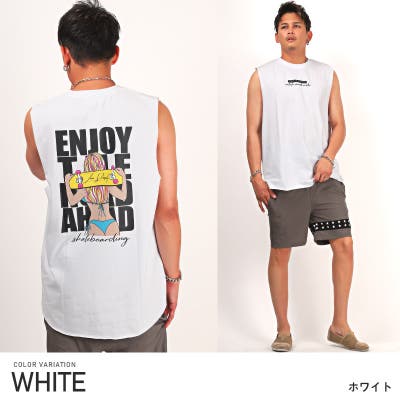 フロントのさりげなロゴデザインとバックの大きなガールプリントが存在感抜群のノースリーブTEE。