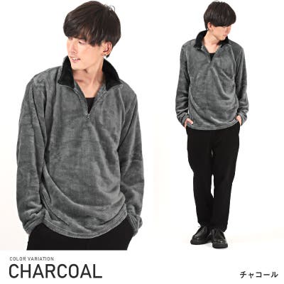 ふわふわで保温性抜群の毛足の長いシャギーボアを両面に採用したハーフZIPシャギーボアトレーナー。
