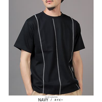 異素材の切り替えとさりげないロックステッチによってスタイリッシュさを演出できる半袖Tシャツ。