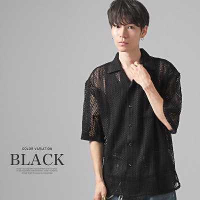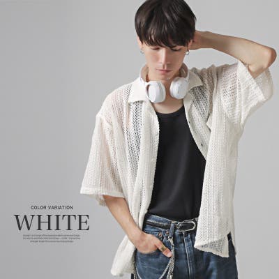 『透かし編みメッシュ開襟半袖シアーシャツ』