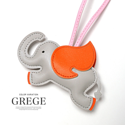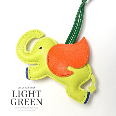 翼を付けたゾウがカラフルな配色で可愛らしいレザーチャーム。