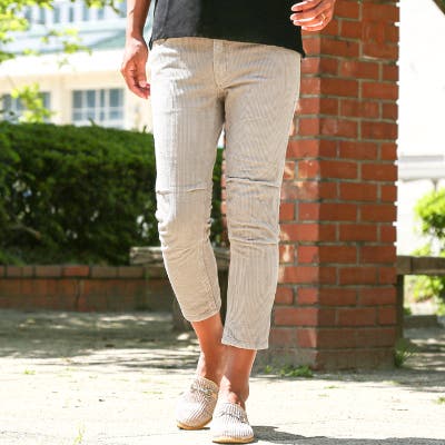 秋冬に人気のコーデュロイ素材と軽やかなクロップド丈を組み合わせることで季節を問わず大活躍!