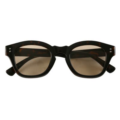 存在感のある太めのウェリントンフレームで小顔効果も期待でき、落ち着きのあるカラーレンズを合わせました。