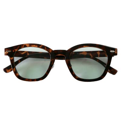 太めのウェリントンフレームにカラーレンズを合わせて存在感のある仕上がり。