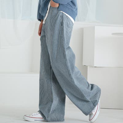 ワークテイスト漂うヒッコリーストライプが印象的なワイドカーブパンツ。