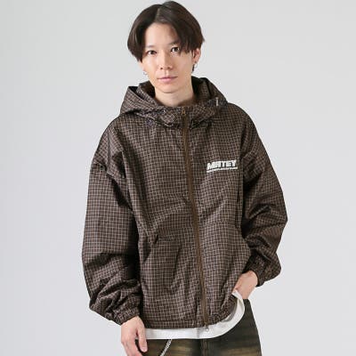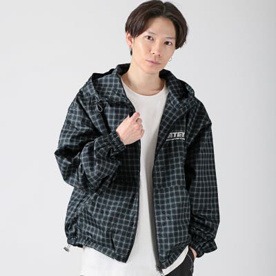 存在感のあるチェック柄が目を惹くフード付きブルゾン。