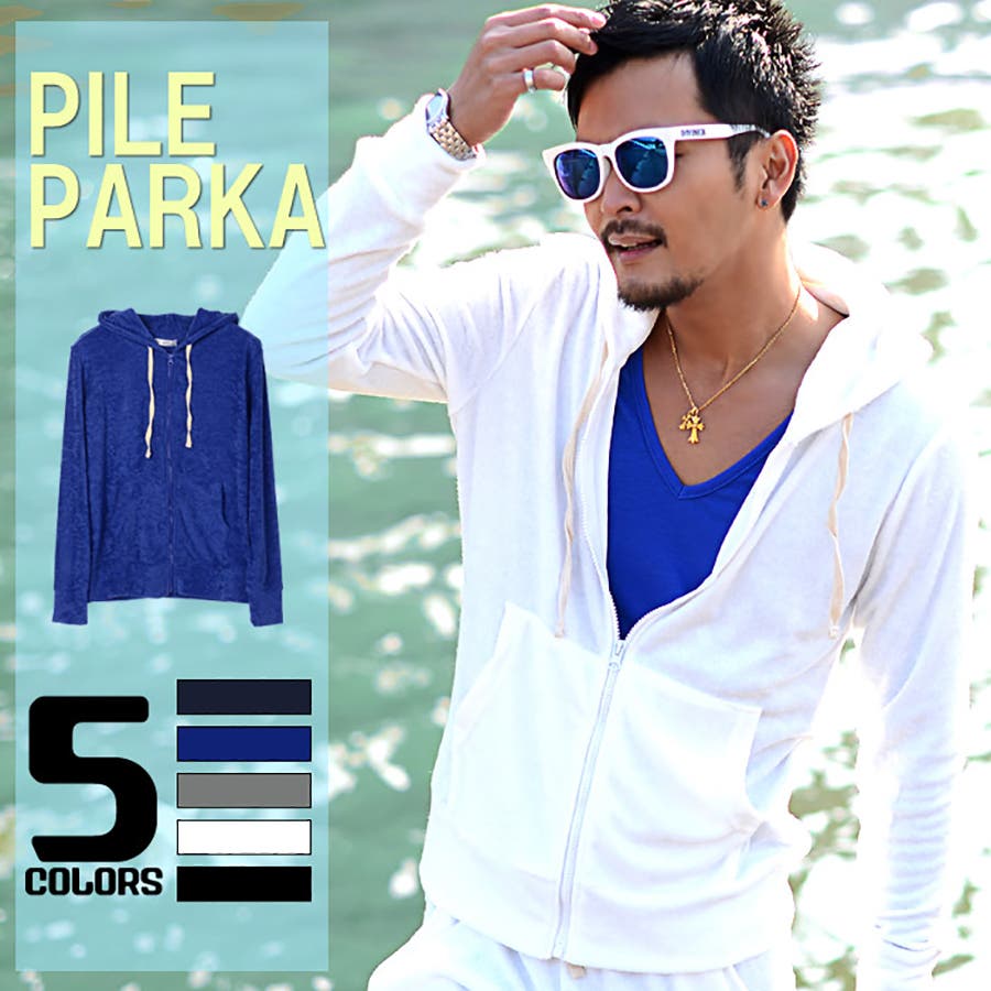 ■タオルのようなソフトな肌触りが心地良いパイル地を使用したジップアップパーカーで、吸水性と通気性も抜群です♪