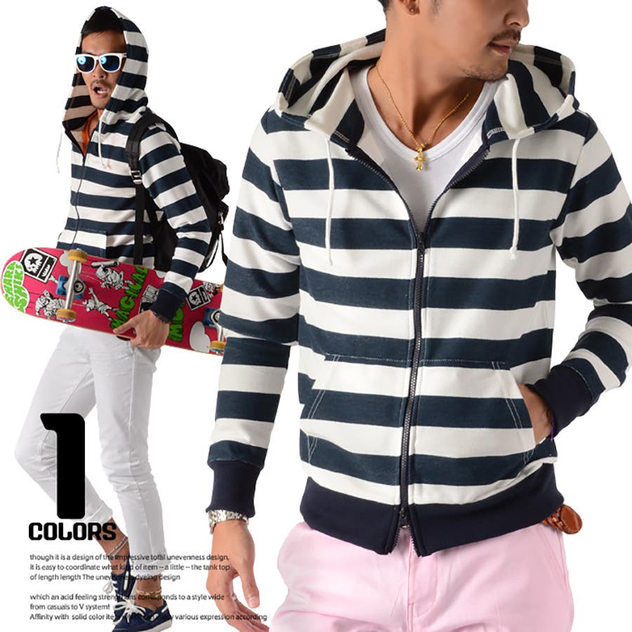 ■お洒落男子は、みんなボーダー!今期のキーカラーを巧みに織り交ぜたマリンボーダーパーカーが気分です。