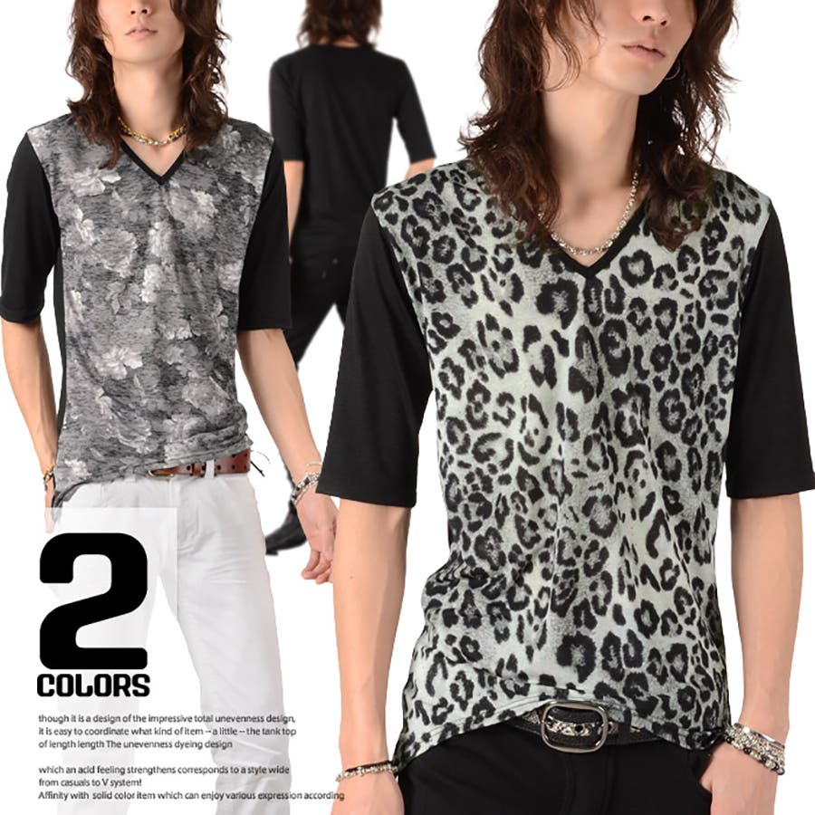 ■フロントの身頃部分にのみ、レオパードと花柄で切り替えた、Vネック5分袖Tシャツの登場!