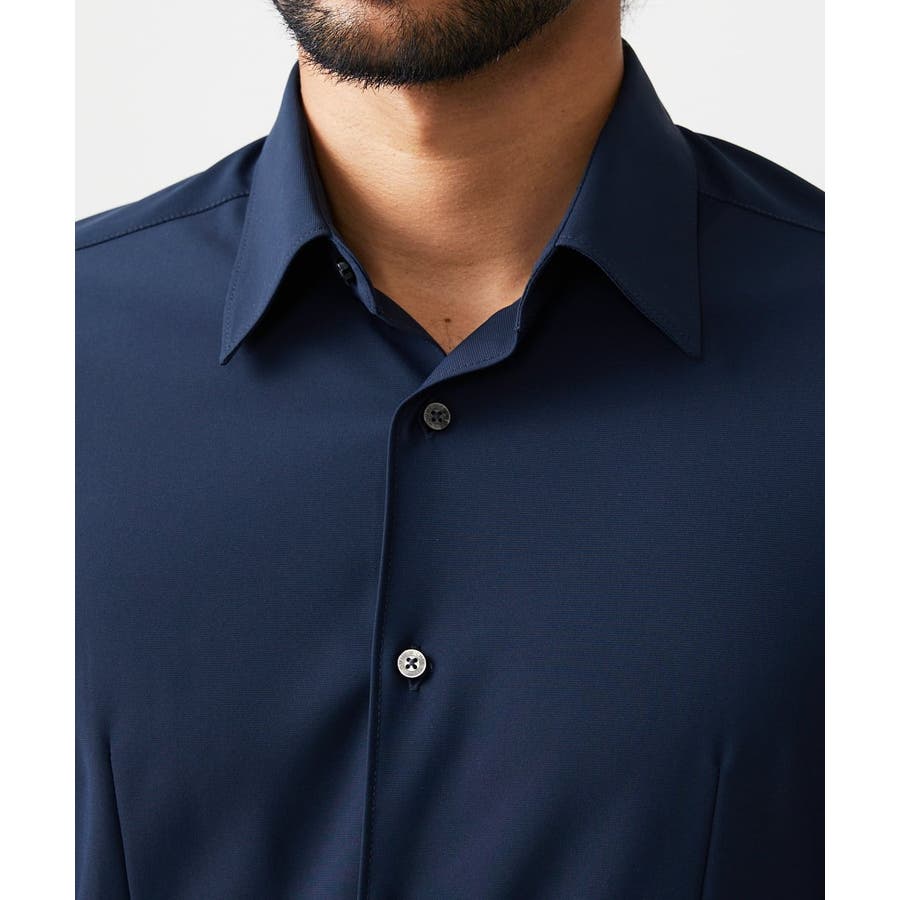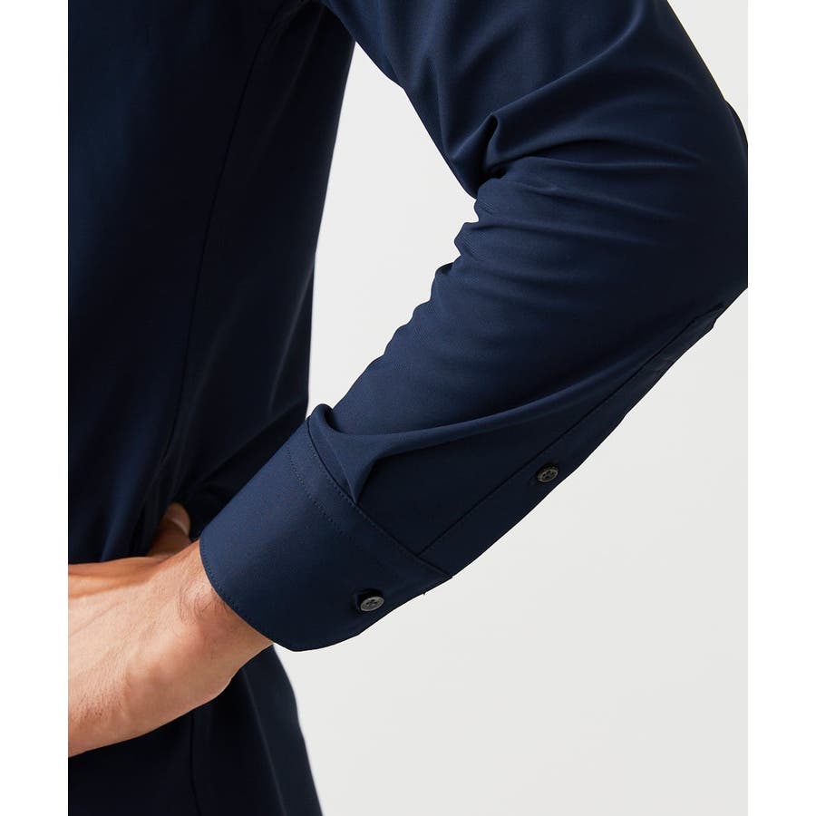 ・イージーケアでありながら、見た目は上品なドレスシャツそのもの。機能性とスタイルを兼ね備えた、現代のライフスタイルに最適な素材です。