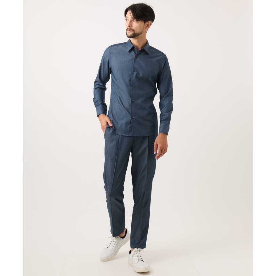 ・経糸には植物由来のサステナブル素材「テンセルTM(リヨセル)」を使用し、緯糸にはポリエステルとポリウレタンのストレッチ糸を織り込んだ、上品なツイル素材を採用。 ・程よい厚みがありながら、接触冷感性によって春夏でも涼しく快適にお召しいただけます。