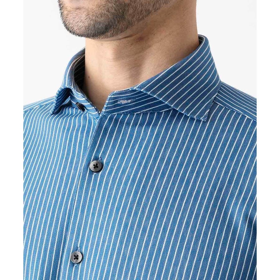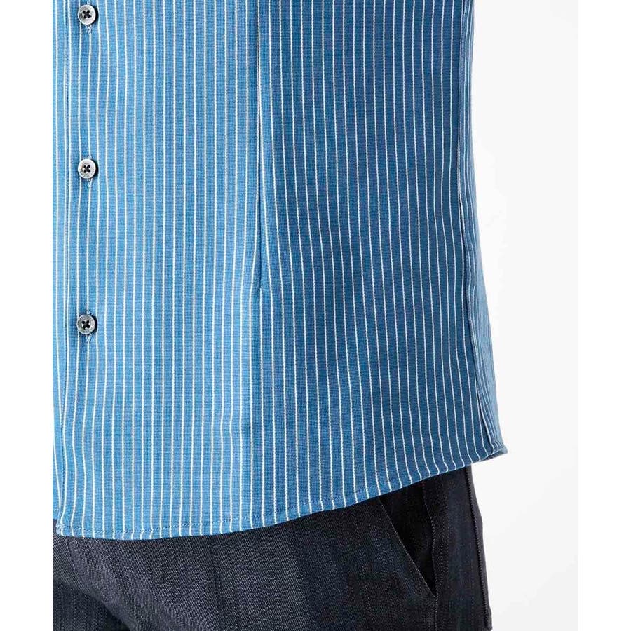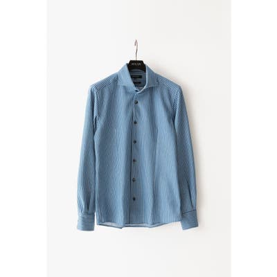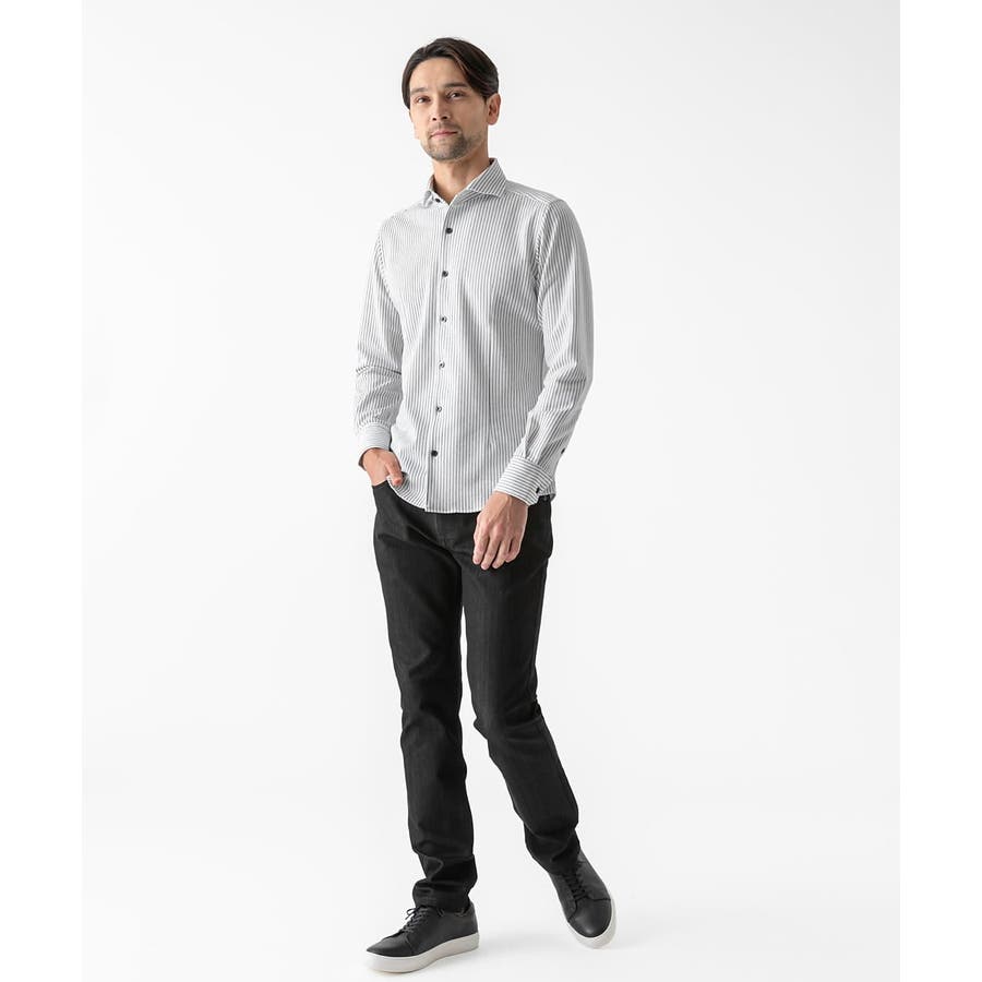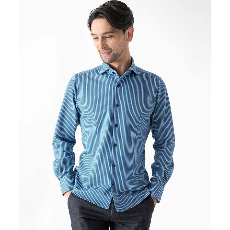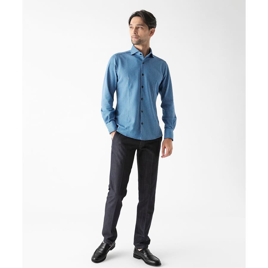 ・水平に近い襟先が特徴のホリゾンタルカラー(カットアウェイ)デザインシャツです。
