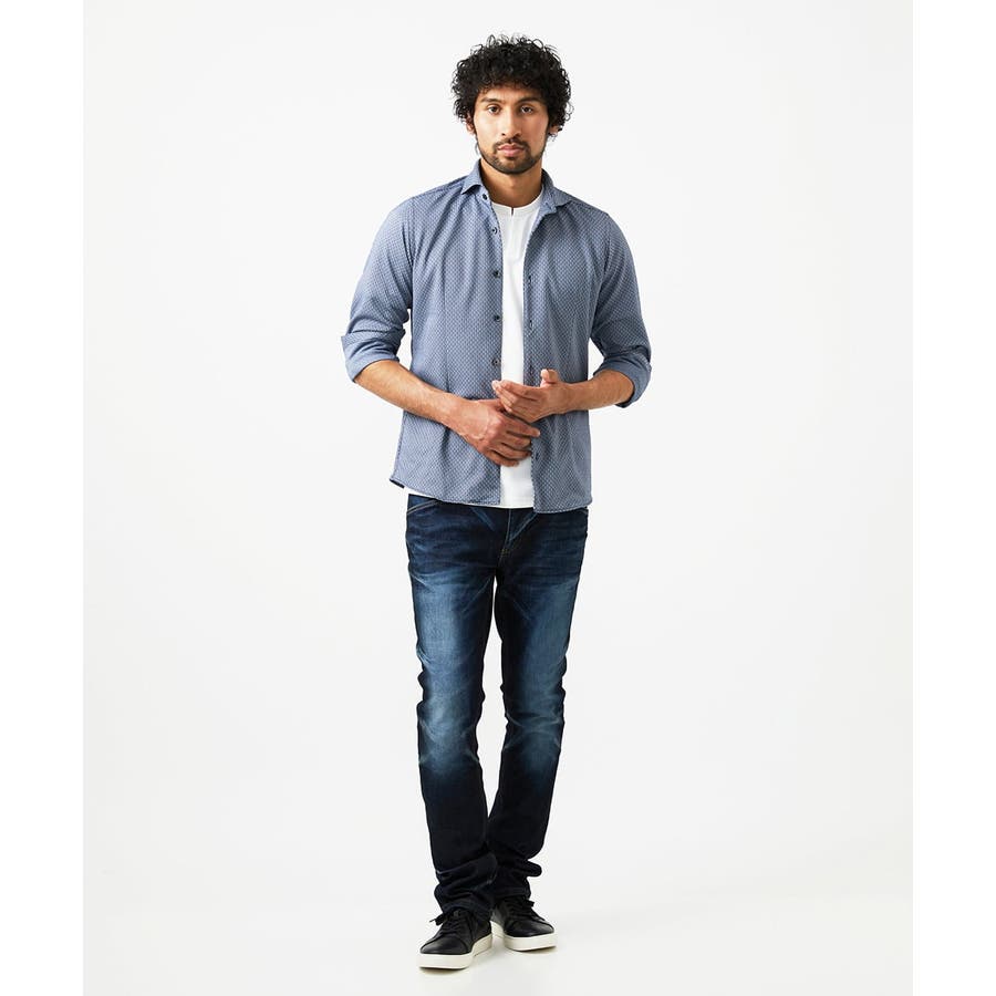 《日本製》ジャガード柄長袖シャツ