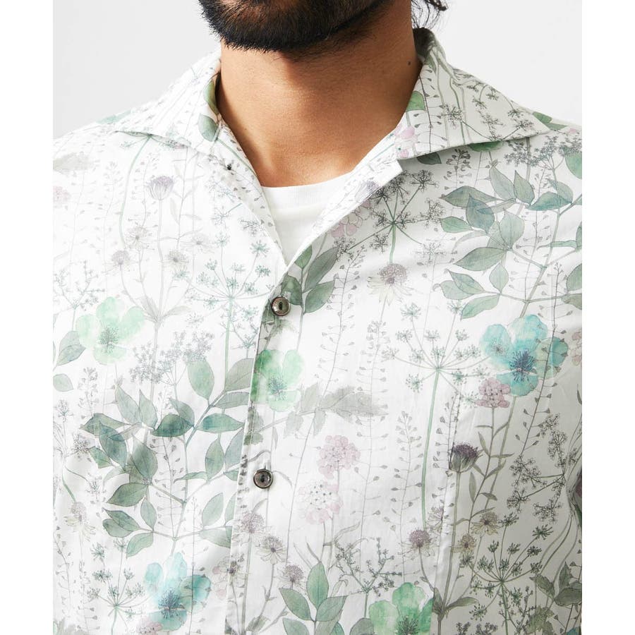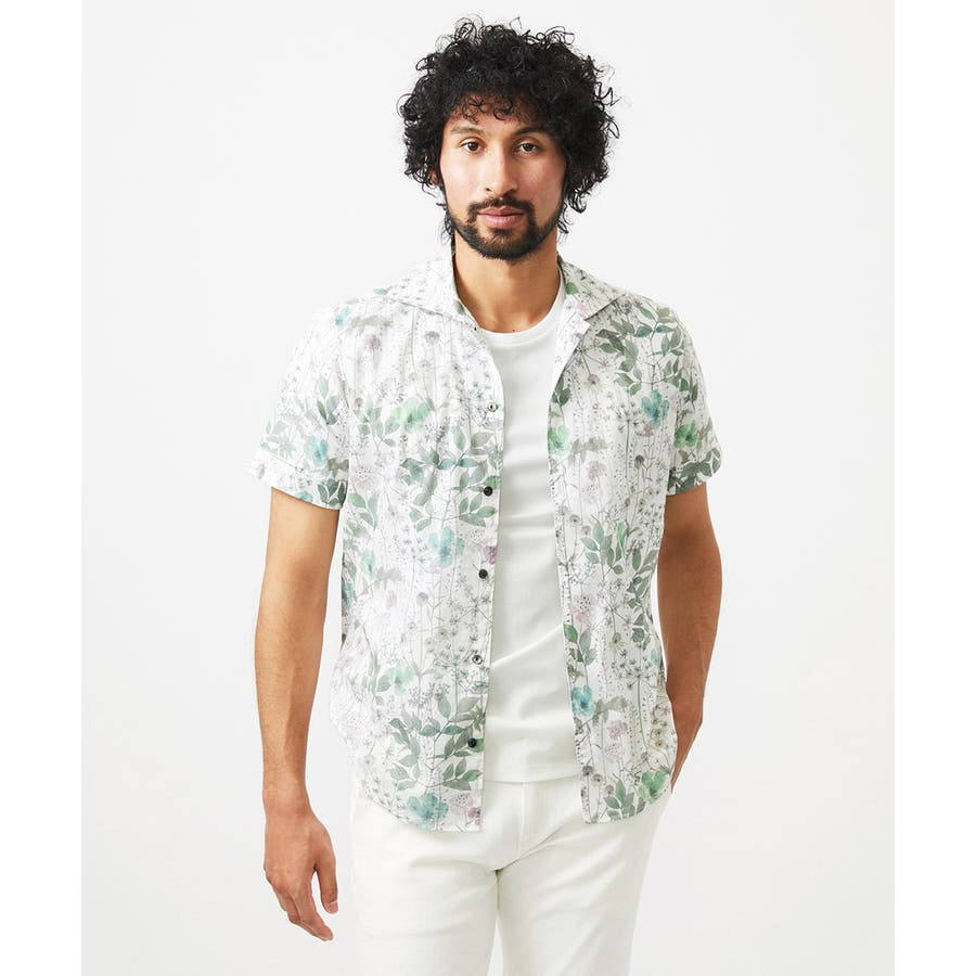《日本製》フラワー柄半袖シャツ