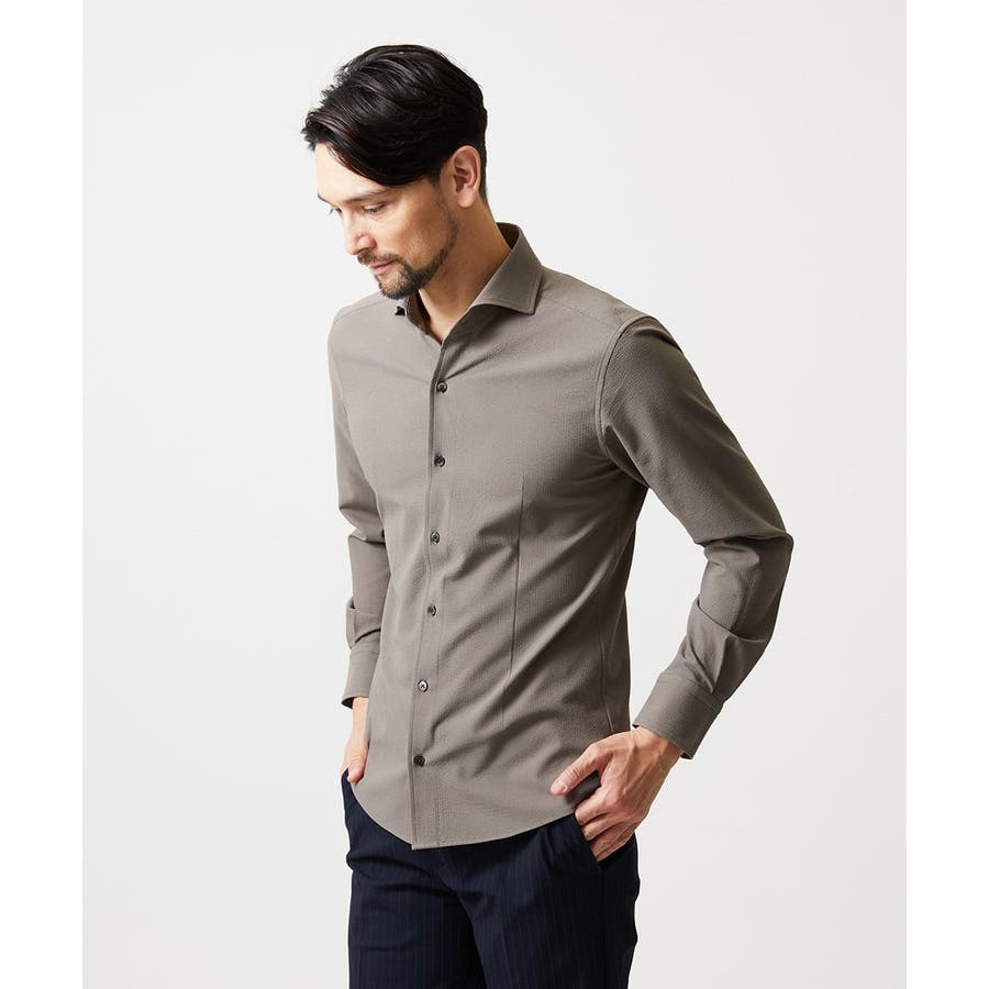 ・襟型はホリゾンタルカラー(カットアウェイ)で、水平に近い襟先がスマートかつ上品な印象を演出します。